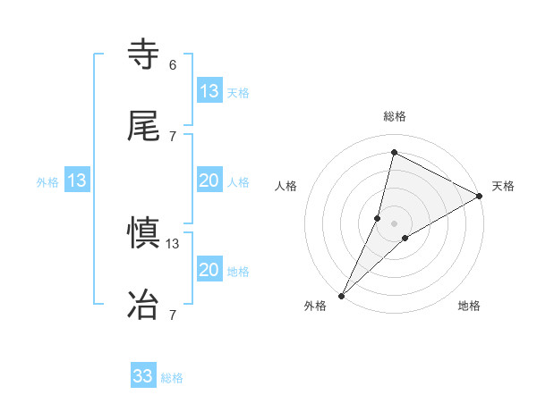 寺尾 慎冶さんの天格は13画の5点!
