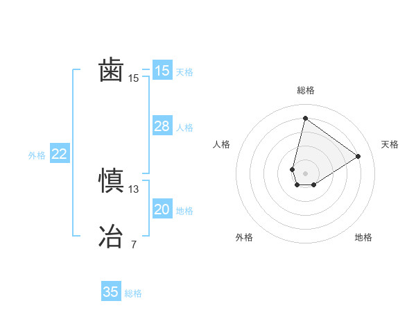 歯 慎冶さんを姓名の画数から五運を鑑定