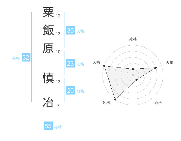 粟飯原 慎冶さんの外格は32画の5点!
