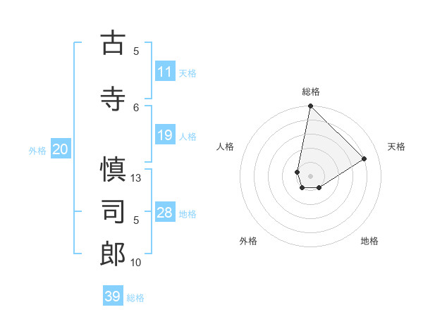 古寺 慎司郎さんの総格は39画の5点!