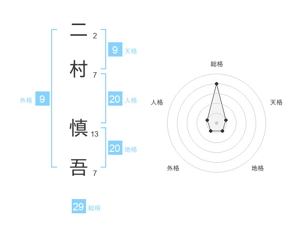 二村 慎吾さんの総格は29画の4点!