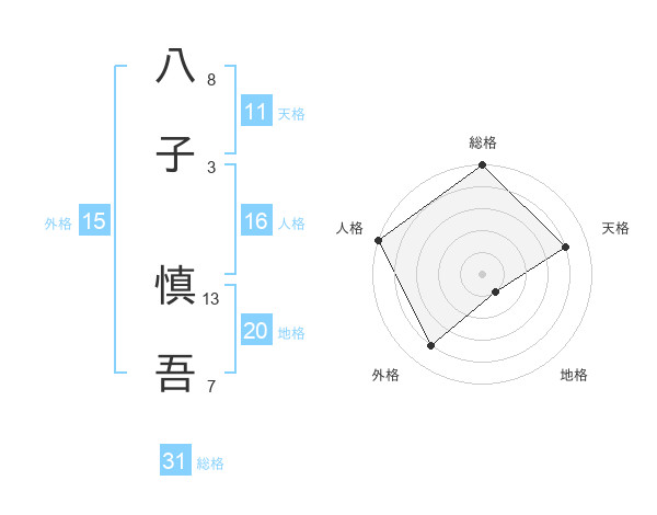 八子 慎吾さんを姓名の画数から五運を鑑定