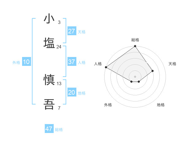 小塩 慎吾さんの総格は47画の5点!