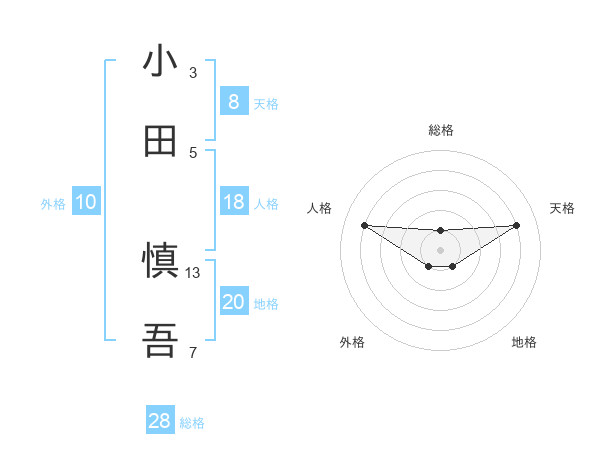 小田 慎吾さんを姓名の画数から五運を鑑定