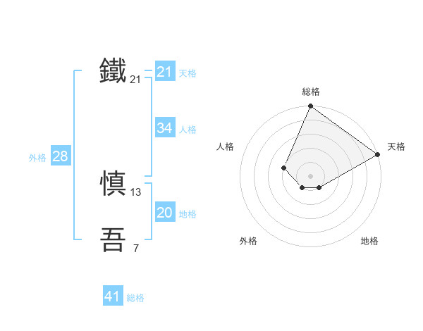 鐵 慎吾さんの天格は21画の5点!