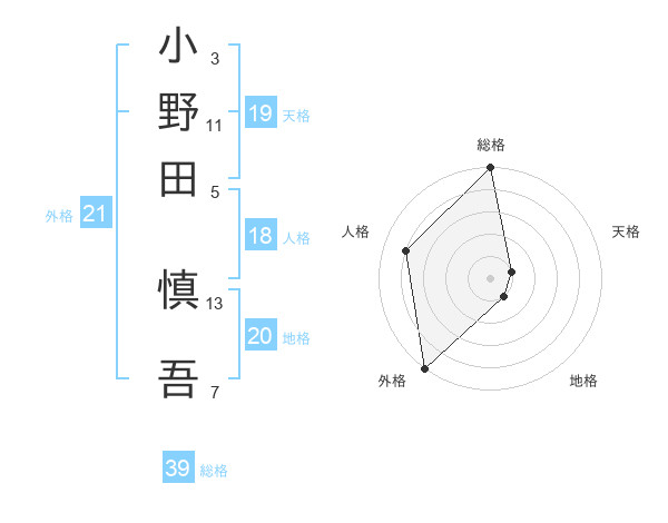 小野田 慎吾さんの総格は39画の5点!