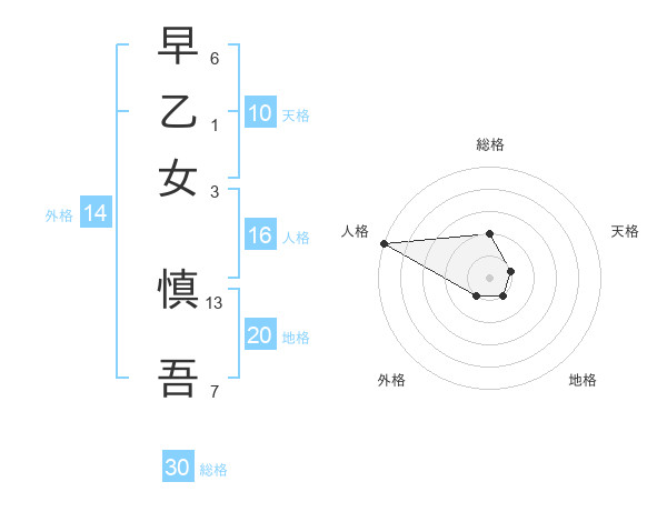 早乙女 慎吾さんを姓名の画数から五運を鑑定