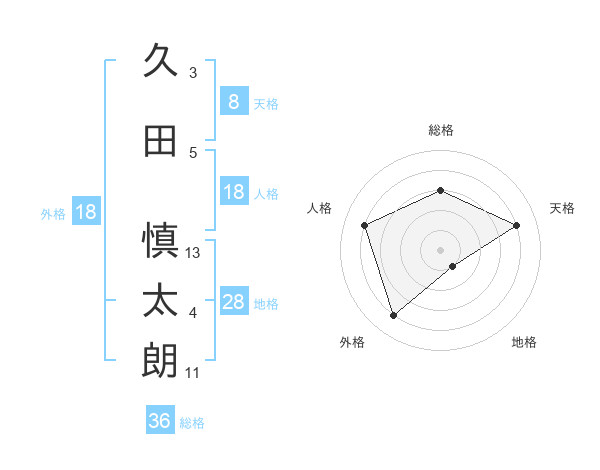 久田 慎太朗さんを姓名の画数から五運を鑑定