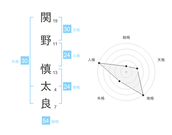 関野 慎太良さんの地格は24画の5点!