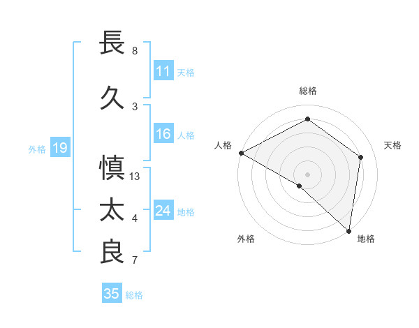 長久 慎太良さんを姓名の画数から五運を鑑定