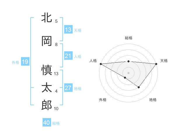 北岡 慎太郎さんを姓名の画数から五運を鑑定