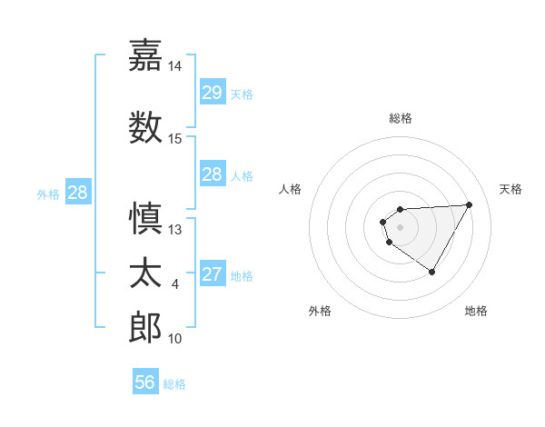 嘉数 慎太郎さんを姓名の画数から五運を鑑定