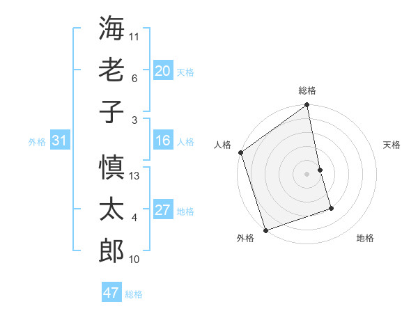 海老子 慎太郎さんを姓名の画数から五運を鑑定
