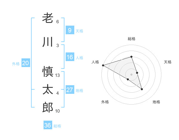 老川 慎太郎さんを姓名の画数から五運を鑑定