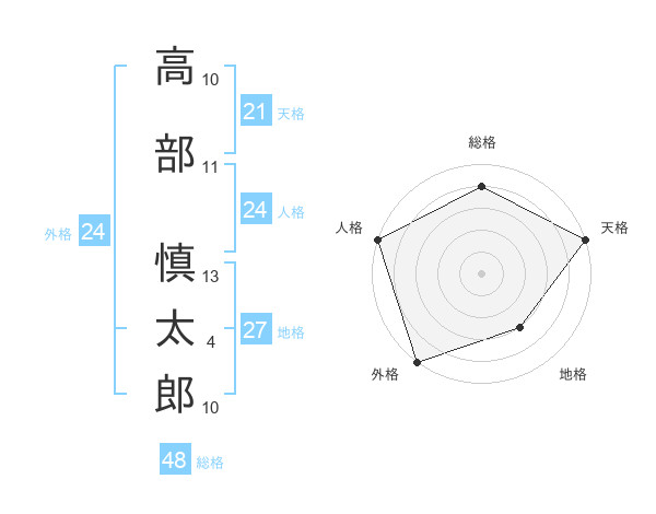 高部 慎太郎さんを姓名の画数から五運を鑑定