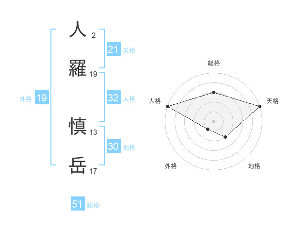 人羅 慎岳さんの総格は51画の3点!