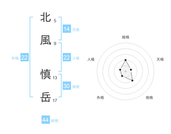 北風 慎岳さんを姓名の画数から五運を鑑定