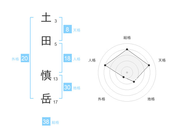 土田 慎岳さんを姓名の画数から五運を鑑定