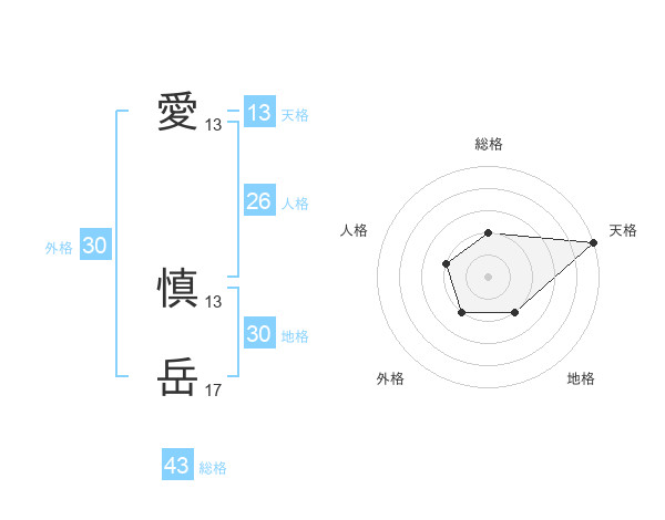 愛 慎岳さんの天格は13画の5点!