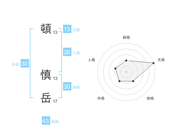 頓 慎岳さんの総格は43画の2点!