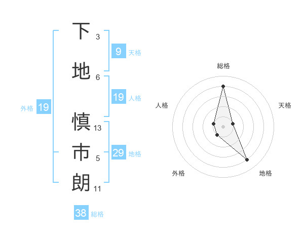 下地 慎市朗さんを姓名の画数から五運を鑑定