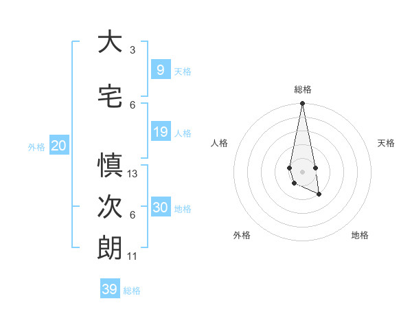 大宅 慎次朗さんの総格は39画の5点!