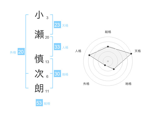 小瀬 慎次朗さんの総格は53画の3点!