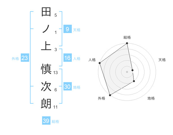 田ノ上 慎次朗さんを姓名の画数から五運を鑑定