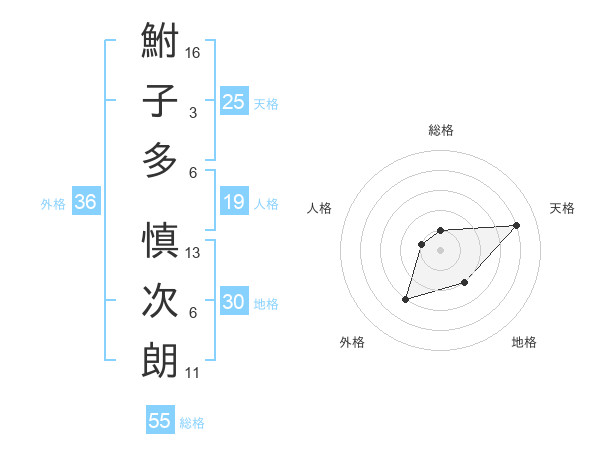 鮒子多 慎次朗さんの総格は55画の1点!