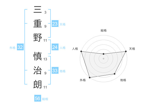 三重野 慎治朗さんを姓名の画数から五運を鑑定