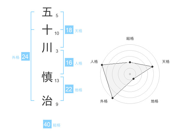 五十川 慎治さんを姓名の画数から五運を鑑定