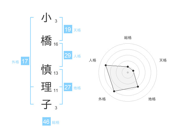 小橋 慎理子さんの天格は19画の1点!