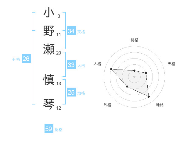 小野瀬 慎琴さんの総格は59画の1点!