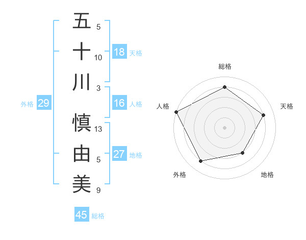 五十川 慎由美さんを姓名の画数から五運を鑑定