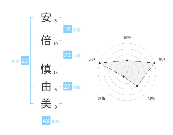 安倍 慎由美さんを姓名の画数から五運を鑑定