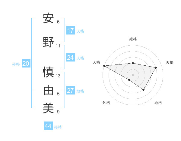 安野 慎由美さんを姓名の画数から五運を鑑定