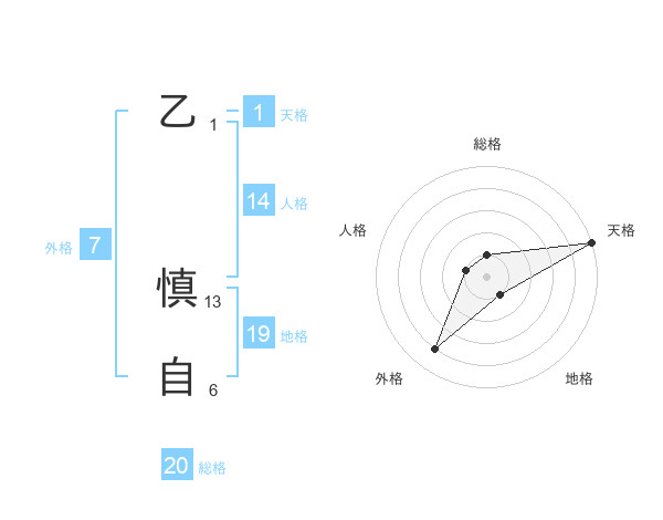 乙 慎自さんの総格は20画の1点!