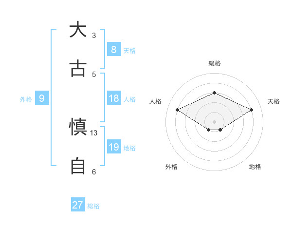 大古 慎自さんの総格は27画の3点!