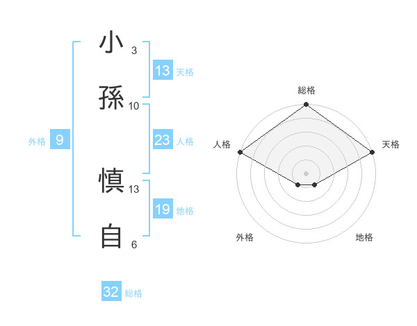 小孫 慎自さんの総格は32画の5点!