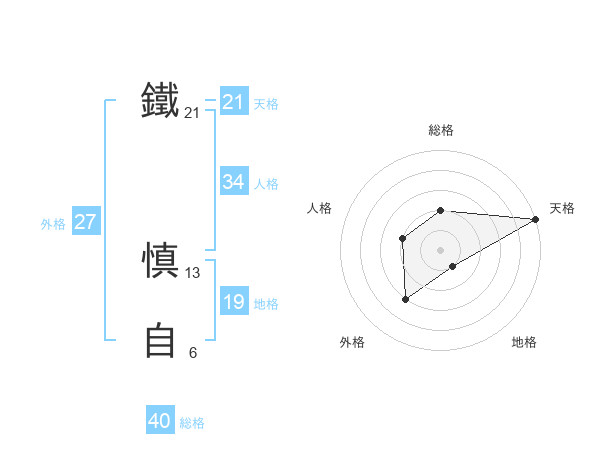 鐵 慎自さんの天格は21画の5点!