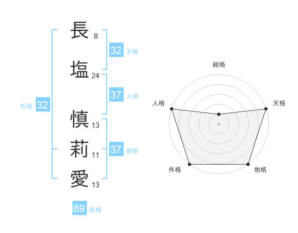 長塩 慎莉愛さんを姓名の画数から五運を鑑定