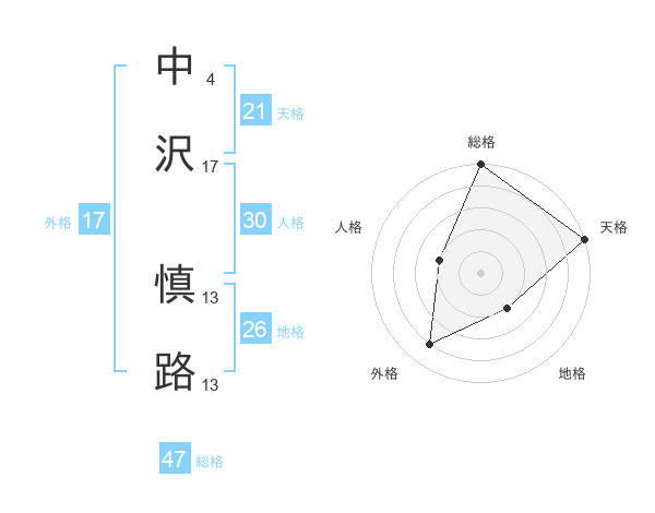中沢 慎路さんを姓名の画数から五運を鑑定