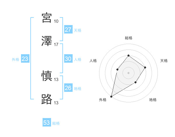 宮澤 慎路さんを姓名の画数から五運を鑑定