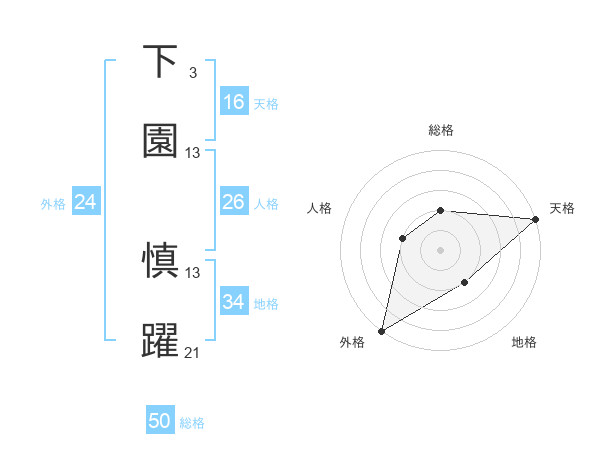 下園 慎躍さんの外格は24画の5点!