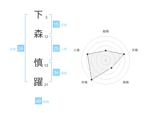 下森 慎躍さんの総格は49画の2点!