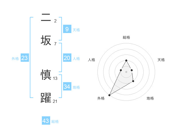 二坂 慎躍さんを姓名の画数から五運を鑑定