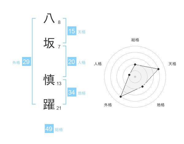 八坂 慎躍さんの総格は49画の2点!