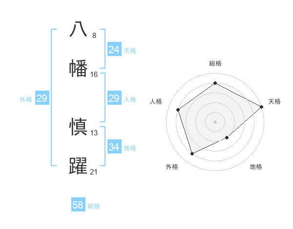 八幡 慎躍さんの総格は58画の4点!