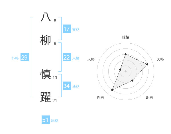 八柳 慎躍さんの総格は51画の3点!