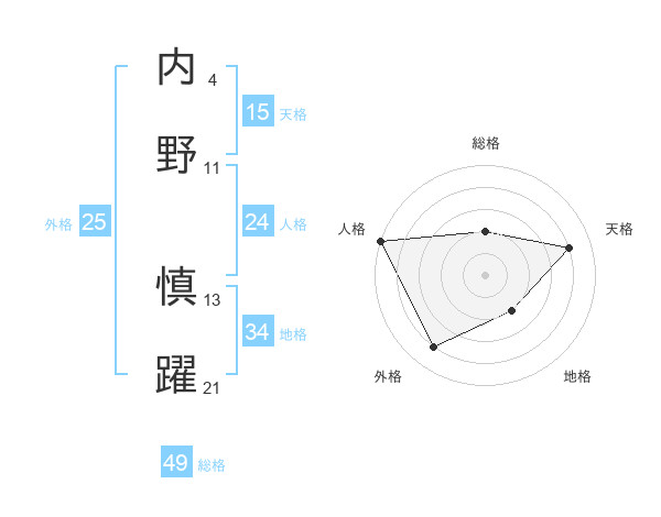 内野 慎躍さんの総格は49画の2点!